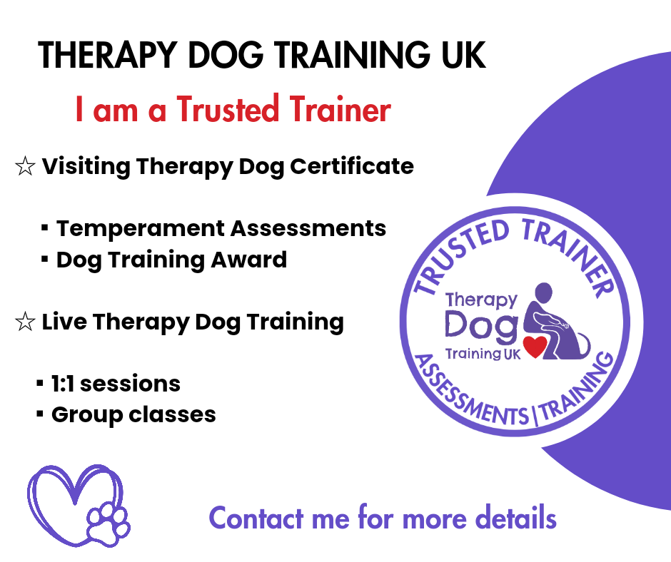 Emma is a Therapy Dog Training UK Trusted Trainer, recognised to support handlers and their dogs through the accredited online training pathway and assessment process that leads to Therapy Dog Training UK certification.